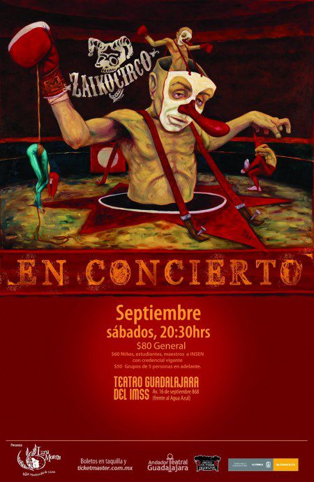 El grupo musical Zaikocirco regresa con su espectáculo interdisciplinario que se estará presentando todos los sábados del mes, iniciando el 1 de septiembre. Más información acerca de Zaikocirco, aquí.