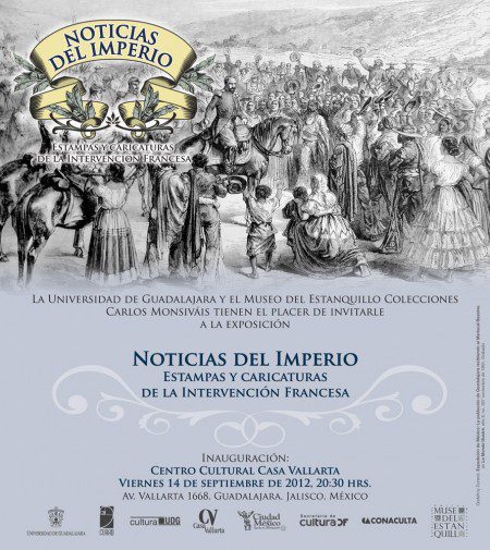 Una de las etapas más importantes de la historia de México será revivida a partir del próximo viernes 14 de septiembre, día en que se inaugurará la exposición Noticias del Imperio. Estampas y caricaturas de la Intervención Francesa en el Centro Cultural Casa Vallarta (Av. Vallarta 1668).