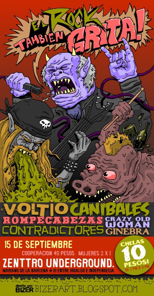 Este sábado 15 no hay mejor manera de «dar el grito» que haciéndolo con bandas de alto poder. Se trata de un concierto en el que participarán interesantes bandas de rock locales como Voltio, Caníbales, Rompecabezas, Crazy Old Woman, Contradictores y Ginebra, todas ellas reunidas en el Zenttro Underground (Mariano de la Bárcena 81, a espaldas del Roxie). El costo es de $40.