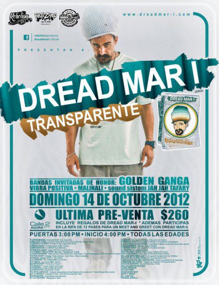 A poco más de un año de su última visita a nuestra ciudad, Dread Mar-I regresará para promocionar su más reciente álbum de estudio titulado Transparente, el cual se estrenó en el mes de abril. De esta producción se desprende su sencillo «Buscar en Jah», el cual seguramente cantará acompañado por su banda Los Guerreros Del Rey, integrada por Walter “Tate” Aguirre (batería), Lucas Colamusi (trompeta), Martín Gariglio (saxo), Fabián “Pigu” Loredo(bajo) y Alejandro Ramos (guitarra).
