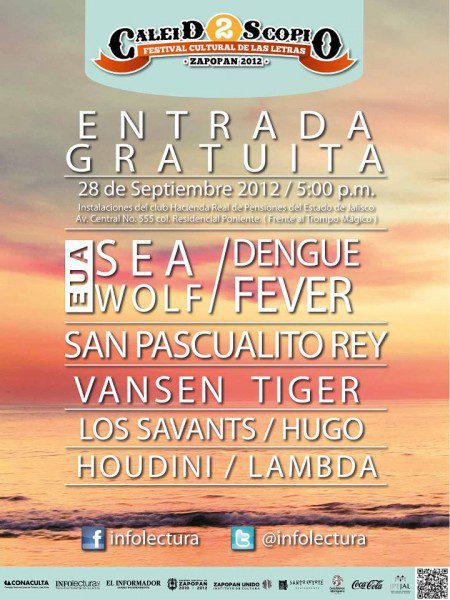 Será el 28 de septiembre a partir de las 17:00, cuando la agrupación de indie-folk californiana Sea Wolf y los angelinos Dengue Fever, encabecen la lista de siete bandas que se presentarán en las instalaciones del club Hacienda Real de Pensiones del Estado de Jalisco, ubicado en Av. Central 555 (frente al Trompo Mágico).