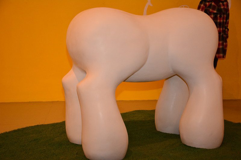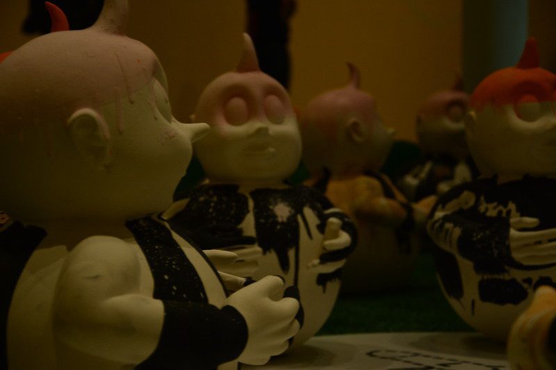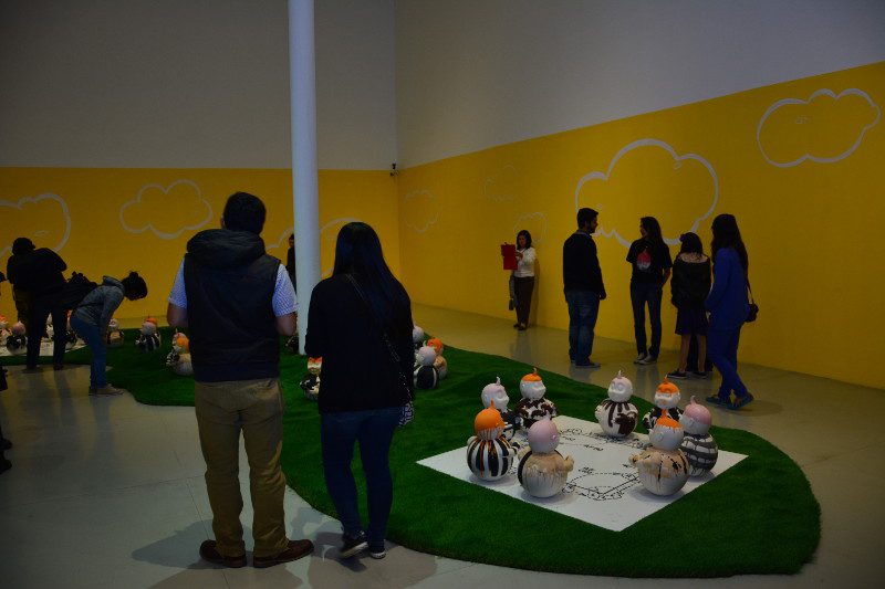 Ya dentro, el flujo de la gente fue interesante, pues todos iban de manera organizada y con el mismo ritmo al paso. Al llegar a la sala «Luis Barragán», precedida de otras exposiciones, la impresión del performance de Mothersbaugh fue imponente e interrogante, pues la sala contenía unas figuras de cerámica de volumen muy pronunciado y sin ojos, llamados Roly Polys.