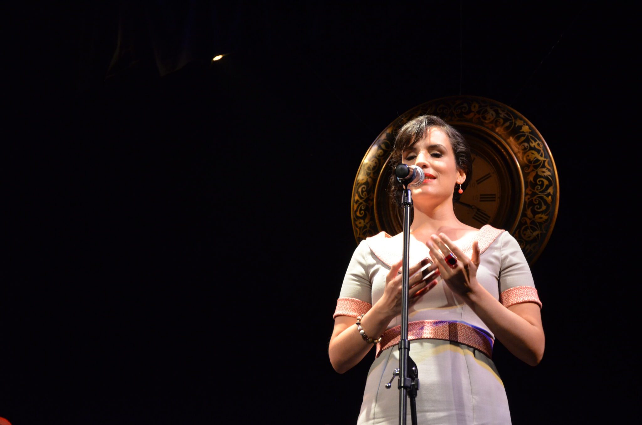 La presentación se vuelve tertulia. Las voces de Florence y Maricarmen tienen deliciosos encuentros y desencuentros, en tanto cada una aporta con peculiar tesitura vocal –Maricarmen con su lirismo de músico de cámara y Florence con una sensualidad fonética e histriónica, que le son propias– las notas altas de la noche.