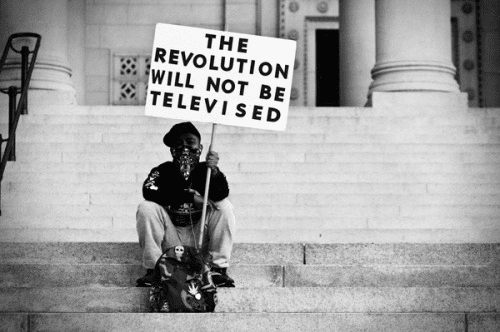 “La revolución no será televisada, tienes que salir y verla si es lo que quieres y por extensión hacerla posible. La revolución no será televisada… la revolución será en vivo.”
