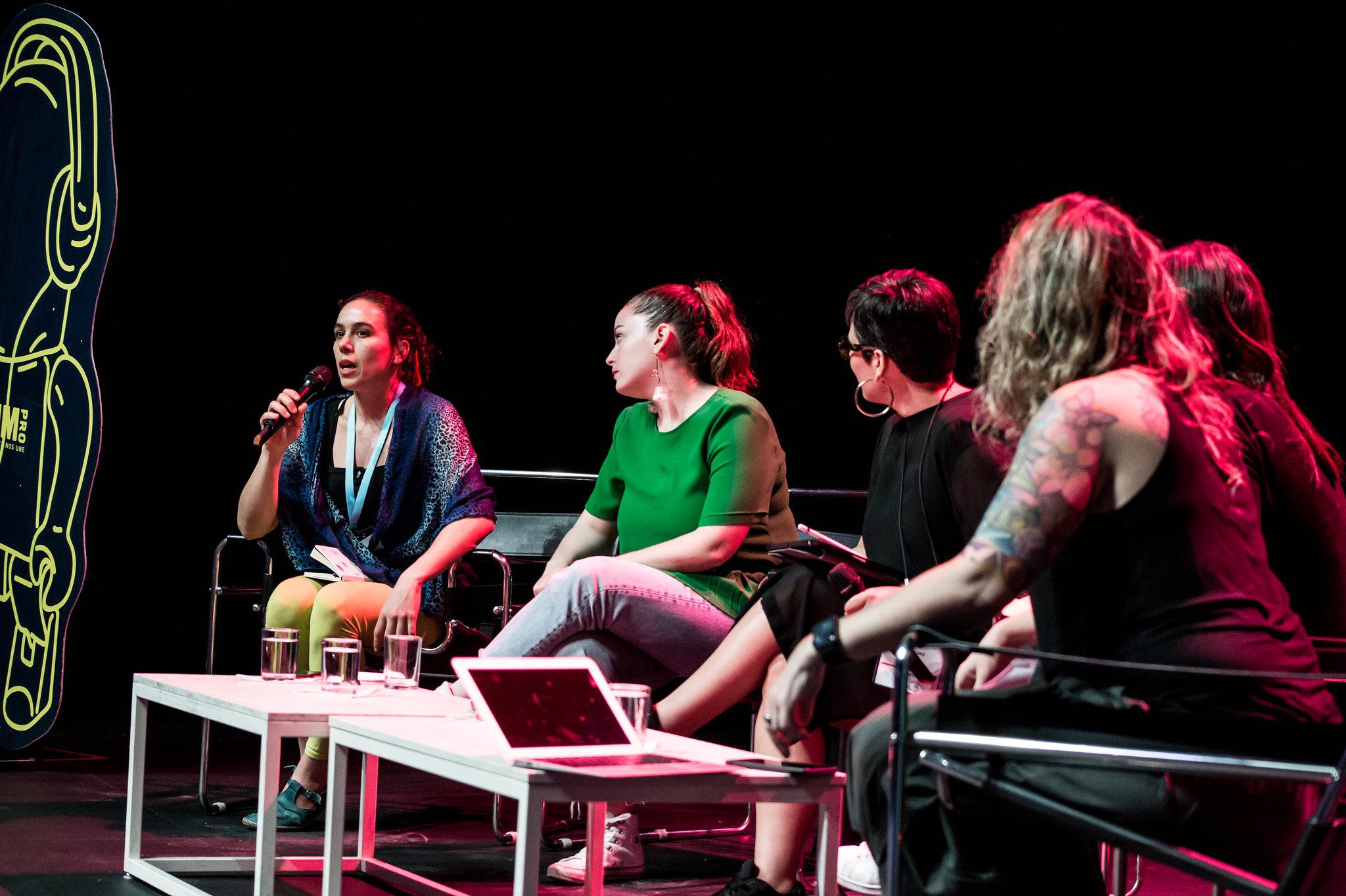 Noela Salas charló sobre sus logros en la plataforma chilena IMESUR, el cual se describe como un encuentro de la industria musical latinoamericana.Por su parte, Mónica Saldaña, directora del festival Nrmal/ Nrmal Fest en México, relató su iniciativa de incluir un mínimo de 30% de mujeres en cada edición del festival, tanto en la parte de las bandas, como en la producción completa.
