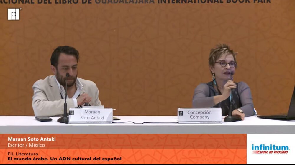 En esta mesa, el tema fue tomado por Concepción Company, escritora, experta en filología y lingüista; y Maruan Soto Antaki, escritor, y un activo partícipe sobre la cultura en distintos medios de comunicación, fueron quienes dieron su análisis, de la presencia árabe en la cultura española, que ha llegado hasta nosotros en México, y de donde ha surgido gran parte de nuestra identidad.