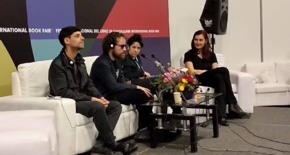Sketchbook Quartet, Mabe Fratti y Angelika Niescier durante su encuentro con los medios en la FIL Guadalajara.