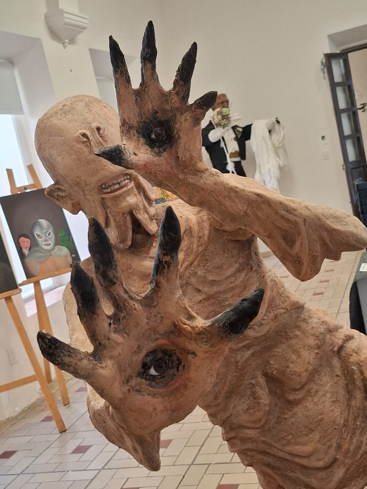 Volviendo al tema central, también nos comentó que unos artistas hicieron sus obras para esta exposición y otros ya tenían muchas hechas, eso solo muestra las afinidades, que coinciden en el gusto por la estética de los monstruos.